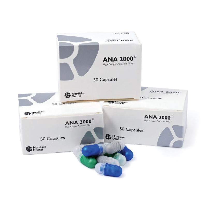 ANA 2000 1 DOSE 50cps Amalgama NoGamma2 Sferica Ternaria Nordinska Amalgama ternaria composta da Ag 43.1%, Sn 30,8%, Cu 26.1% Amalgama con una espansione ben bilanciata ed un'elevata forza. Questa combinazione assicura margini migliori, una durata pił lunga e fratture marginali minori. Le particolari capsule utilizzate sono riusabili e progettate soprattutto per garantire sicurezza ed igiene. Tipologia : 1 dose Confezione: 50 capsule